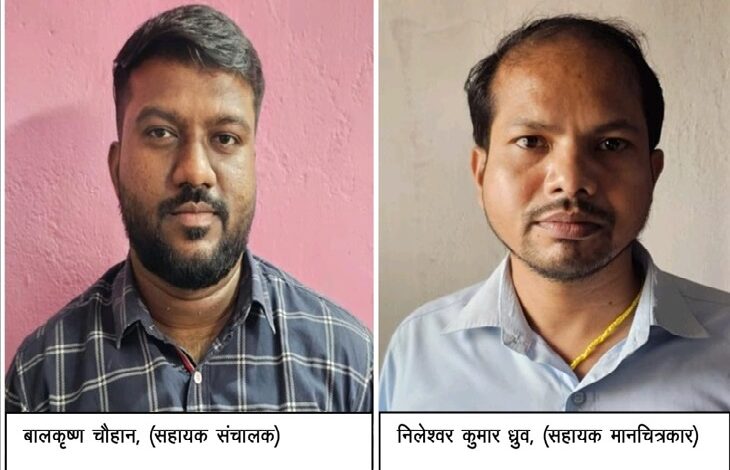 रिश्वत लेते रंगे हाथों गिरफ्तार हुए सहायक संचालक व सहायक मानचित्रकार