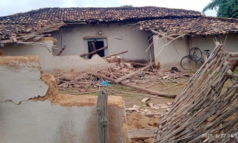 वन परिक्षेत्र बहरासी के ग्राम पंचायत धोवाताल में जंगली हाथियों के द्वारा दो घर को तोड़ दिया गया