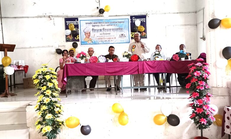 बैकुण्ठपुर/ गत् दिवस शासकीय आदर्ष रामानुज उच्चतर माध्यमिक विद्यालय बैकुण्ठपुर शिक्षक दिवस सम्मान समारोह आयोजित हुआ। उक्त कार्यक्रम में सेवानिवृत्त शिक्षक श्री सोहन लाल पाण्डेय, सेवानिवृत्त शिक्षिका श्रीमती इन्द्रावती मिश्रा, सेवानिवृत्त प्राचार्य श्री यू0 एस0 शुक्ला, सेवानिवृत्त व्याख्याता श्री गीता प्रसाद नेमा एवं सेवानिवृत्त व्याख्याता श्री राजेन्द्र प्रसाद सोनी का सम्मान किया गया। सर्वप्रथम सभी आमंत्रित अतिथियों द्वारा माँ सरस्वती एवं सर्वपल्ली डॉ0 राधा कृष्णन के छायाचित्र पर माल्यार्पण एवं दीप प्रज्जवलन किया गया।