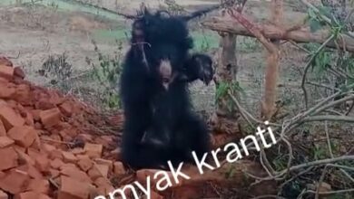 भालू बना कौतूहल का विषय ,फंसा तारों के बीच ग्रामीणों ने निकाला, देखने लोगो का हुजूम