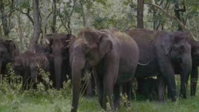 विकासखण्ड भरतपुर के पार्क परिक्षेत्र कमर्जी में पहुंचा 11 हाथियों का दल