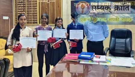 10वीं और 12वीं में प्रथम, द्वितीय व तृतीय स्थान प्राप्त करने वाले विद्यार्थियों को कलेक्टर ने किया सम्मानित