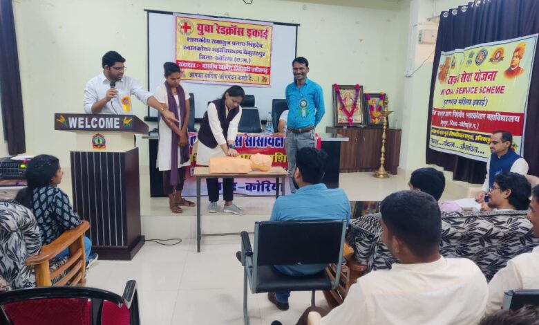 बैकुण्ठपुर/मुख्य चिकित्सा एवं स्वास्थ्य अधिकारी डॉ. प्रशान्त सिंह के मार्गदर्शन और प्राचार्य डॉ. ए.सी.गुप्ता के संरक्षण, युवा रेडक्रॅास प्रभारी एवं जिला संगठक प्रो. एम.सी.हिमधर, कार्यक्रम अधिकारी द्वय डॉ. प्रीति गुप्ता एवं अनुरंजन कुजूर तथा रेड रिबन क्लब प्रभारी डॉ. बी.के.पाण्डेय के संयोजन में शासकीय रामानुज प्रताप सिंहदेव स्नातकोत्तर महाविद्यालय बैकुण्ठपुर के सभागार में प्राथमिक चिकित्सा अंतर्गत दो पाली में प्रशिक्षण का आयोजन किया गया जिसमें महाविद्यालय के विद्यार्थियों के साथ-साथ प्राध्यापक एवं कार्यलयीन स्टाफ भी शामिल रहे।