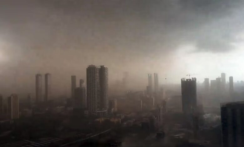 मुंबई / मुंबई में इस सीजन की पहली बारिश के साथ तेज धूल भरी आंधी चली है। इस वजह से आसमान में अंधेरा छा गया। बारिश की वजह से मुंबई वासियों को राहत तो मिली लेकिन आंधी चलने से कुछ जगह तबाही की भी खबरें आ रही हैं।