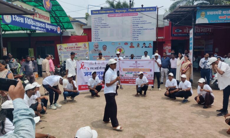 जिसमें शासकीय रामानुज प्रताप सिंहदेव स्नातकोत्तर महाविद्यालय बैकुण्ठपुर के स्वंयसेवकों द्वारा जिला अस्पताल, बस स्टैंण्ड, कुमार चौंक, साप्ताहिक बाजार छिन्दडांड़, छिन्दिया चौंक एवं सामूदायिक स्वास्थ्य केन्द्र पटना में गीत, नृत्य एवं नुक्कड़ के माध्यम से प्रेरक नारों के साथ एच.आई.वी. एड्स के कारण, लक्षण, बचाव और एचआईवी पाजीटिव मरीज से भेदभाव न करने तथा टोल फ्री नंबर 1097 की जानकारी देते हुए लोगों को जागरूक किया गया।