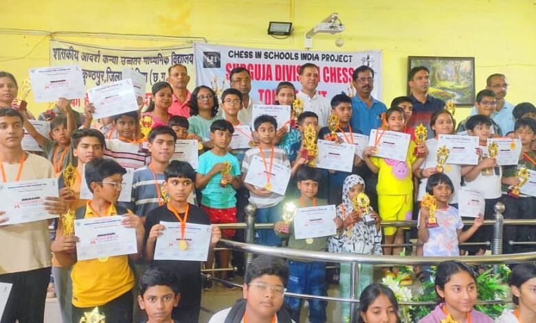 ड्रीम प्रोजेक्ट चेस इन स्कूल के तहत आयोजित सरगुजा संभाग स्तरीय शतरंज प्रतियोगिता में अभिनंदन, आफरीन,ऋषभ, आदिति ,आदर्श ,अनन्या, अरूप, आयशा , अक्षत राज ,नायशा ,अहान , अंशा ने जीता अपने अपने वर्ग का खिताब