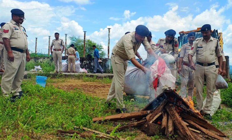 जप्त गांजा,नशीली इंजेक्शन और टेबलेट को एसपी की मौजूदगी में किया गया नष्ट