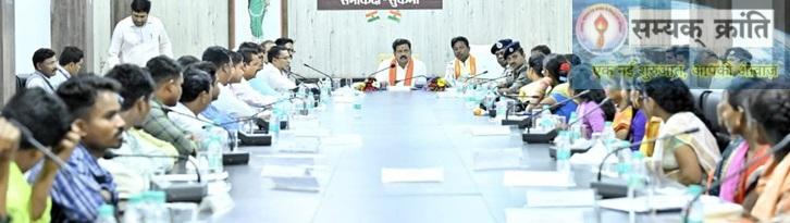 सुकमा  प्रदेश के उपमुख्यमंत्री एवं गृहमंत्री विजय शर्मा ने शनिवार को अपने एक दिवसीय सुकमा प्रवास के दौरान कलेक्ट्रेट कार्यालय में नक्सल प्रभावित संवेदनशील क्षेत्रों के सरपंचों, जनपद सदस्यों और जिला पंचायत प्रतिनिधियों के साथ माओवाद मुक्त बस्तर के निर्माण को लेकर व्यापक चर्चा की। बैठक की शुरुआत में उपमुख्यमंत्री  शर्मा ने सभी पंचायत प्रतिनिधियों से परिचय प्राप्त किया और उनके क्षेत्रों की भौगोलिक स्थिति एवं मूलभूत सुविधाओं की उपलब्धता की जानकारी ली। उन्होंने कहा कि बस्तर में विकास की अपार संभावनाएँ हैं और यहाँ के बच्चे अत्यंत प्रतिभाशाली हैं।