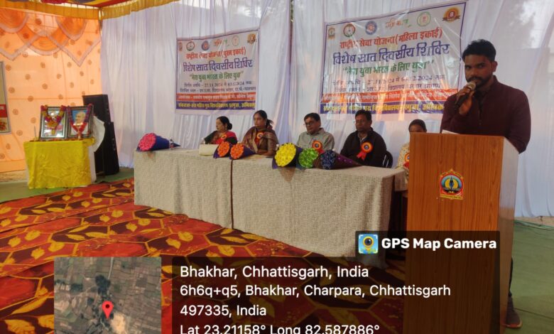 बैकुन्ठपुर/शासकीय रामानुज प्रताप सिंहदेव स्नातकोत्तर महाविद्यालय बैकुन्ठपुर के राष्ट्रीय सेवा योजना महिला एवं पुरुष इकाई का विशेष सात दिवसीय शिविर का आयोजन डॉ० ए०सी०गुप्ता प्राचार्य के संरक्षण कार्यक्रम अधिकारी द्वय डॉ० श्रीमती प्रीति गुप्ता एवं अनुरंजन कुजूर के संयोजन में मेरा युवा भारत के लिए युवा थीम पर ग्राम भखार, शासकीय उच्चतर माध्यमिक विद्यालय प्रांगण में किया गया है।