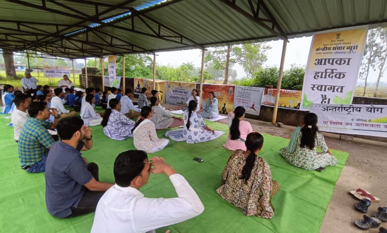 सरगुजा/ अंतरराष्ट्रीय योग दिवस के अवसर पर केंद्रीय संचार ब्यूरो के क्षेत्रीय कार्यालय अंबिकापुर द्वारा विशेष जन जागरूकता कार्यक्रम का आयोजन शासकीय उच्चतर माध्यामिक विद्यालय जयनगर जिला सूरजपुर में किया गया ।